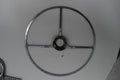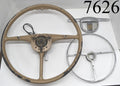 Original Steering Wheel Assembly off a 1948 Dodge D24 Custom Deluxe 4 Door with Fluid Drive! Includes everything shown. The steering wheel is in good shape; just three cracks where the horn ring attaches on the arms. There is a crack in the lens of the horn button. It’ll need repainted but that’s no big deal. The horn ring and button have only minor pitting, good shape for being almost 75 years old! I believe this will fit a 46-48 but pinning down exact interchange on parts this old can be tricky at best, so please do your research prior to purchasing to ensure fitment.