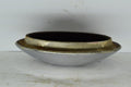 Measures 10” total across, 8” from lip to lip, and is about 2” deep.
