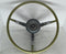 Original Steering Wheel out of a 1967 Ford Mustang! This is a blue wheel, but it is very faded from age. The grip on the wheel itself is splitting and cracking. The chrome is a bit pitted, but in pretty nice shape. The horn ring is included. The horn button is included as well, with the Mustang Emblem, but it is facing the wrong way somehow and I can’t figure out how to twist it back. All in all this is good for a daily driver or for someone up for reconditioning.