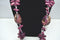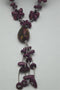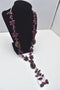 This is 18 inches from base to tip and can adjust several inches bigger. This is a beautiful purple necklace.